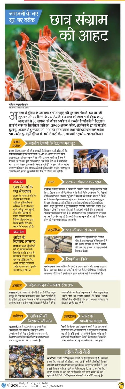 31 अगस्त 2016 को राजस्थान पत्रिका में प्रकाशित