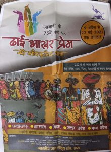 Dhai Aakhar Prem यात्रा के पहले चरण में देश के पांच हिंदी भाषी राज्यों में “ढाई आखर प्रेम के…” यात्रा में कलाकार गीत, संगीत, नृत्य नाटिका, लोक कलाओं के माध्यम से सांप्रदायिकता से दूर रहकर जनता को प्रेम से रहने का आव्हान कर रहे हैं।