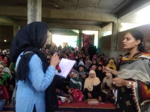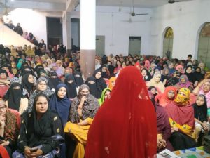 Following the intensive Jan Sampark process, most active members usually organize large public and hall meetings which are termed as Jan Sabhas which are attended by more than 1000 people at a time. These are generally held in Madarsas, Masjids or Halls. Women have been attending these Jan Sabhas in large numbers, and clarifying their doubts as well with the Resource Team.