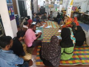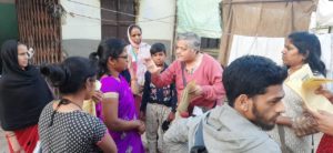 The Jan Sampark Bhopal team spreads out as multiple groups in different locations with 10-12 members in each team. The method of engagement is simple. Based on the calls and invites received from various locations different, a Jan Sampark unit reaches the basti connects with the local organizers and initiates the campaign.