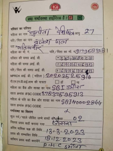सुनीता के तीसरे गर्भ का पंजीयन 9 मई 2023 को आंगनवाड़ी केंद्र मे दर्ज हुआ। इसमें LMP दिनांक 13 मार्च 2023 दर्ज की गयी। इस आधार पर प्रसव की संभावित तिथि 18 दिसंबर 2023 थी। सुनीता नियमित रूप से अपने दैनिक कामों पर लगी रही। दो बच्चों की देखरेख और लालन पालन में अपना समय देती रहीं। इसके साथ ही गर्भावस्था को ध्यान रखते हुए दो टीके क्रमशः 9 मई 2023 और 28 जुलाई 2023 को लगवाए। गर्भावस्था के दौरान सेवा प्रदाताओं से आयरन फोलिक एसिड की 60 गोलियां मिलीं, जिसमें से सुनीता ने केवल 30 गोलियां ही खाईं। हीमोग्लोबिन का स्तर 9.4 से 9.8 तक रहा। सुनीता आखिरी गर्भकाल माह (9 वां) में संभावित प्रसव दिनांक का इंतजार करती रहीं। इसी दौरान दिनांक 1 दिसंबर 2023 को पेट में दर्द हुआ तो पति ब्रजेश उन्हें 108 सेवा का नंबर डायल कर जननी गाड़ी से आशा कार्यकर्ता के साथ डभौरा प्राथमिक स्वास्थ्य केंद्र ले गए।