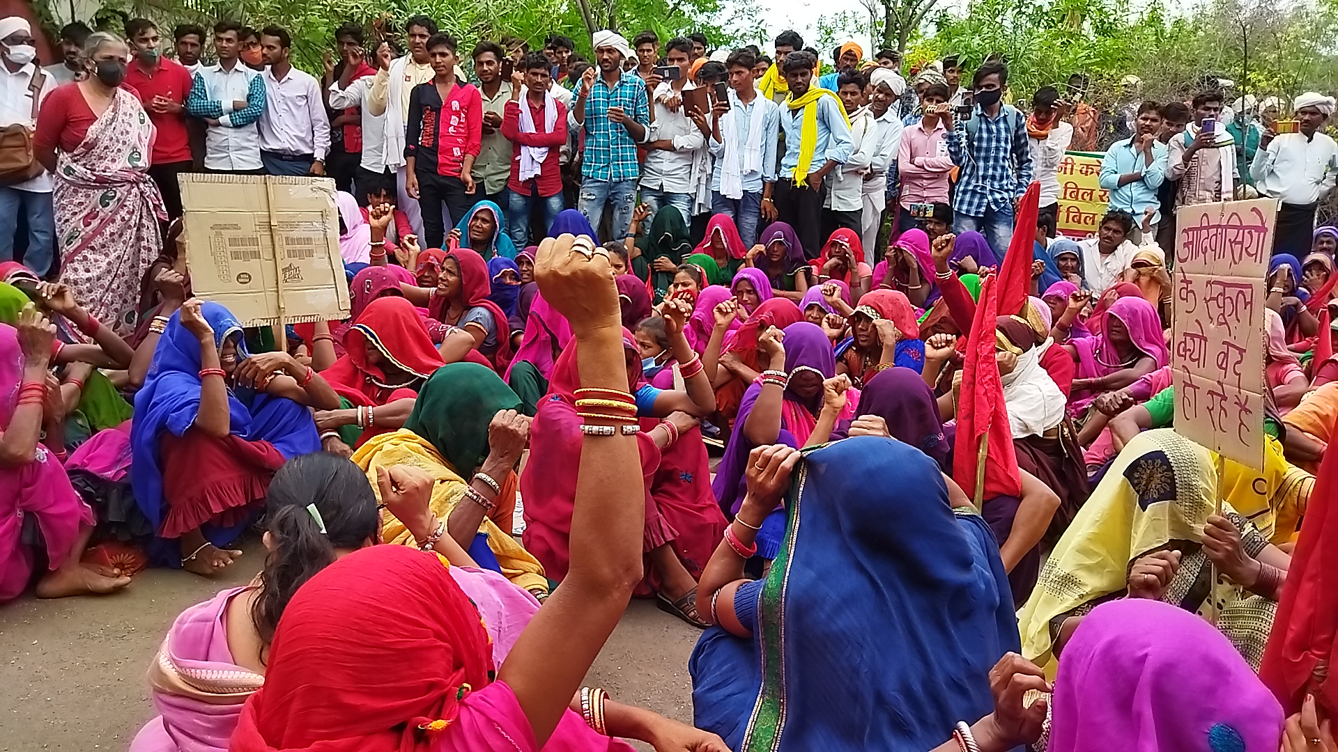 कलेक्टर कार्यालय के गेट पर कारण बताओ नोटिस लेने पहुंचे एस. डी. एम. और एस.डी.ओ.पी से लगभग 1 घंटे आदिवासियों ने क्षेत्र की मूलभूत समस्याओं के संबंध में तीखे सवाल किए।
