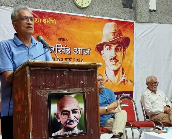 भोपाल के सांस्कृतिक, सामाजिक संगठनों, समूहों की सामूहिक पहल पर मोहनिया कक्ष, गांधी भवन में शहीदों को याद करते हुए कार्यक्रम का आयोजन किया गया। कार्यक्रम में (Bhagat Singh) ‘भगतसिंह – आज’ विषय पर सक्रिय सांस्कृतिक आंदोलनकारी शम्सुल इस्लाम ने उपस्थित जनसमूह के साथ संवाद किया। आयोजकों का कहना है कि बदलते वक्त के साथ-साथ यह ज़रुरत बढ़ती गयी है, कि शहीद भगतसिंह के जीवन और विचारों की रोशनी में देश की राजनीतिक और सामाजिक परिस्थितियों को देखा, परखा, समझा जाए। कार्यक्रम की अध्यक्षता श्याम बोहरे ने की।